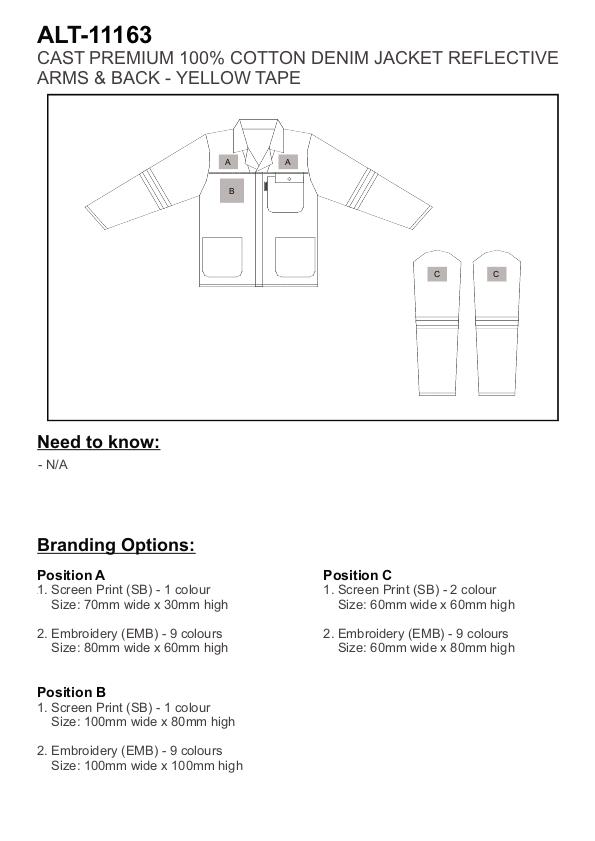Cast Premium 100% Cotton Denim Jacket - Reflective Arms & Back - Yellow Tape