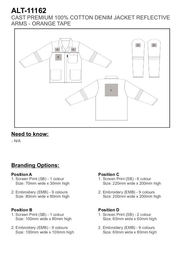 Cast Premium 100% Cotton Denim Jacket - Reflective Arms - Orange Tape