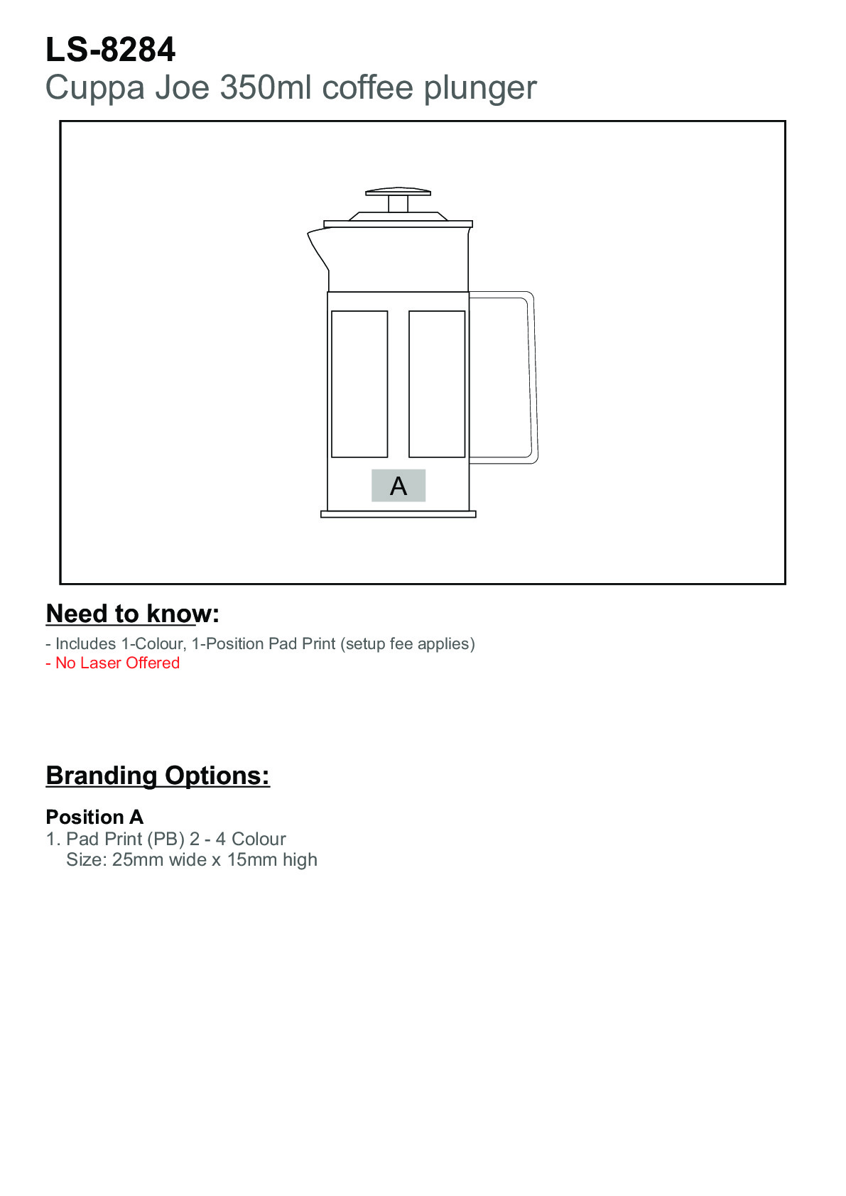 Whilst this product is dishwasher safe, branding methods, other than laser engraving and sublimation, will not withstand dishwasher cleaning.