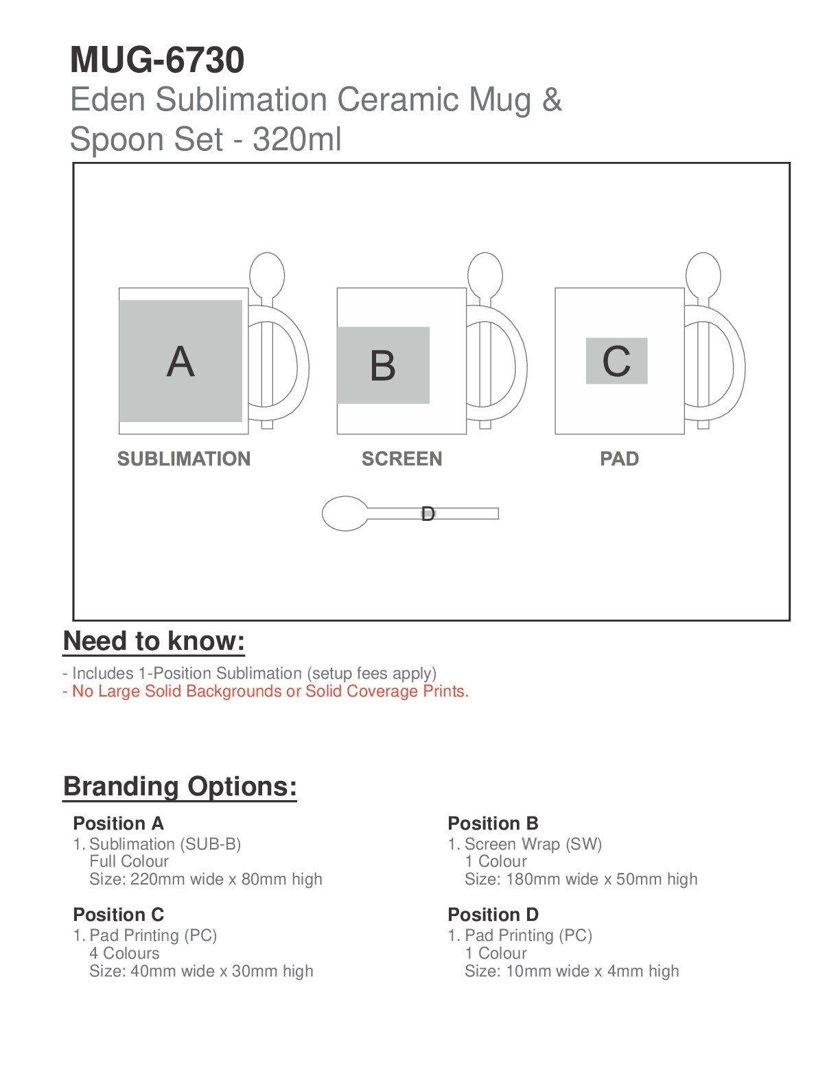 Eden Sublimation Ceramic Coffee Mug & Spoon Set - 320ml