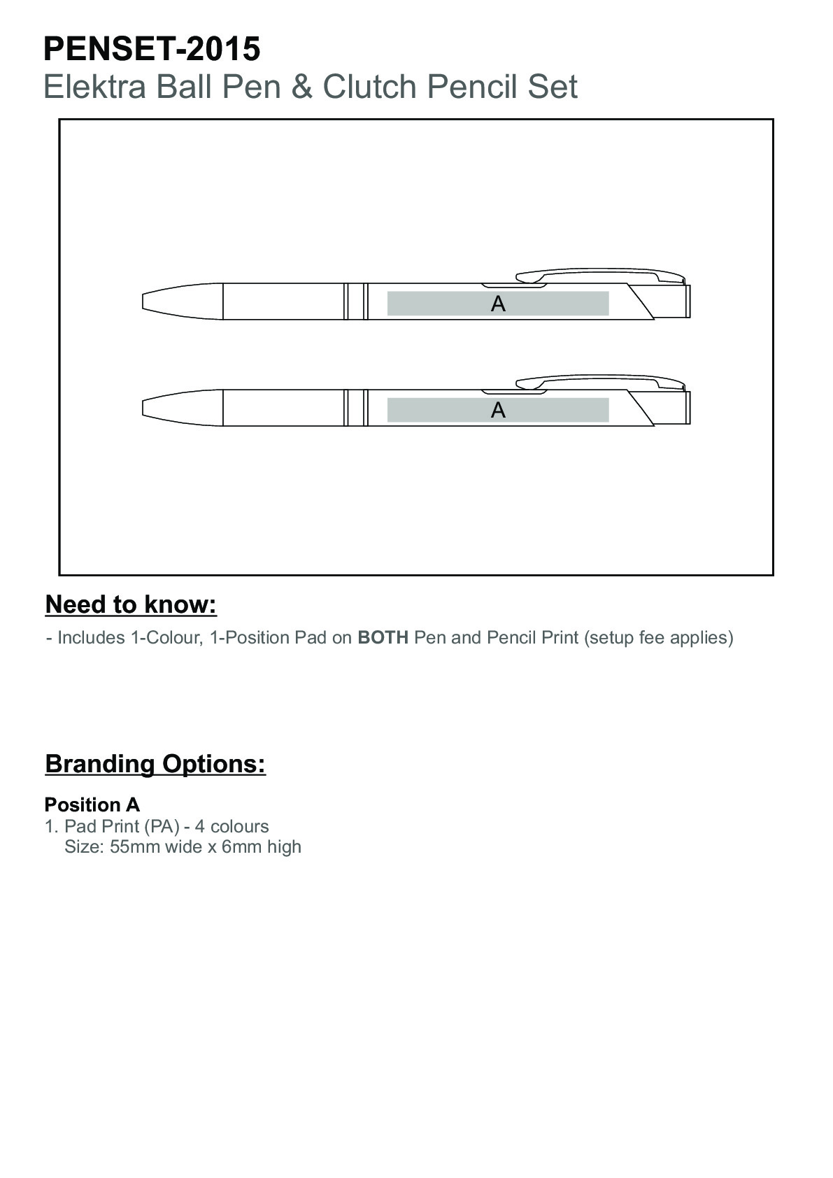 A matching plastic ball pen and mechanical pencil are paired together in a black cardboard pouch.