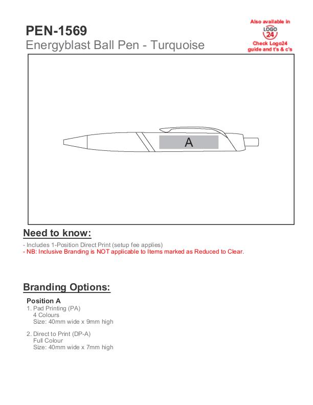Should you wish you digitally print the other side of the pen, please use the branding code DP-A to establish the print price on that side.