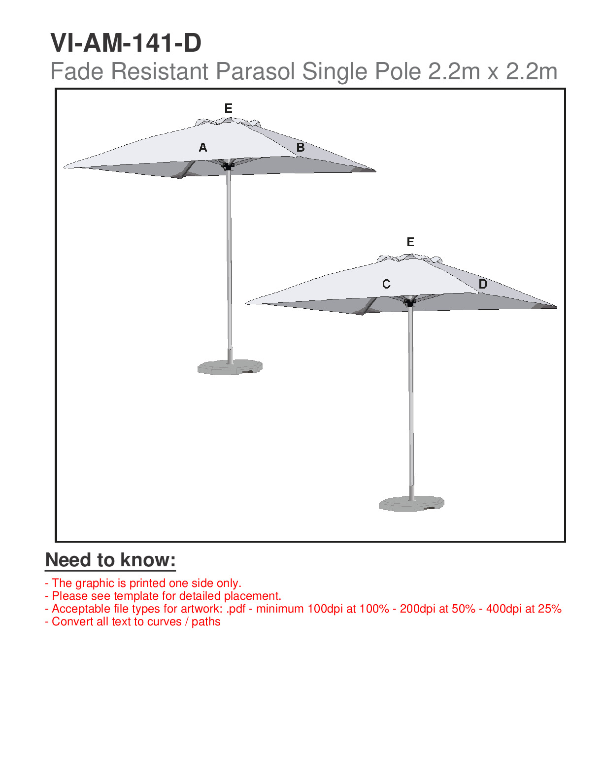 Fade Resistant Parasol Single Pole 2.2m x 2.2m