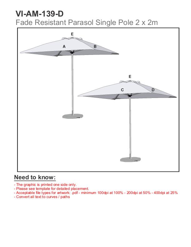 Fade Resistant Parasol Single Pole 2m x 2m