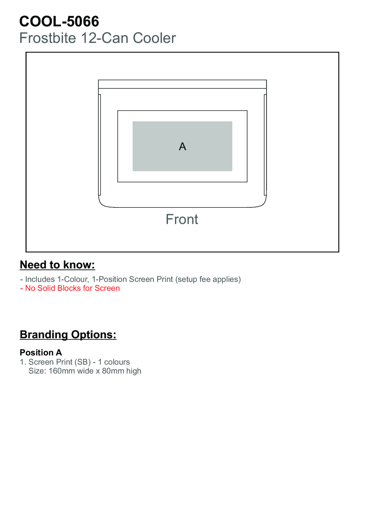 Double -up with the Frostbite 12 can cooler. Main zippered compartment with aluminium foil lining. Holds 12 cans. Front slip pocket. Side mesh pocket. Opposite side pocket with Velcro flap closure. Non-slip durable base. Adjustable shoulder strap.