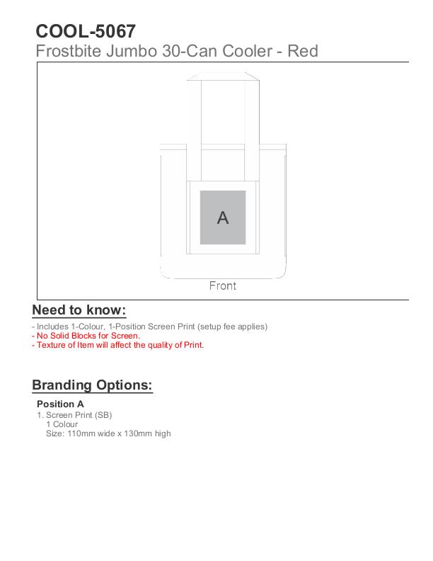 Meet the Head of the Frostbite Family that holds up to 30 coolers. Main zippered compartment with aluminium foil lining. Front slip pocket. Side mesh pocket. Opposite side pocket with Velcro flap closure. Non-slip durable base. Adjustable shoulder strap. Durable double handles with Velcro handle wrap.( Check out other coolers from the FROSTBITE collection. Cool-5065 & Cool-5066. All Sold individually)