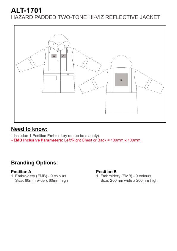 - two-tone jacket with silver 50mm reflective tape detail • concealed zip features storm flap with press stud closure