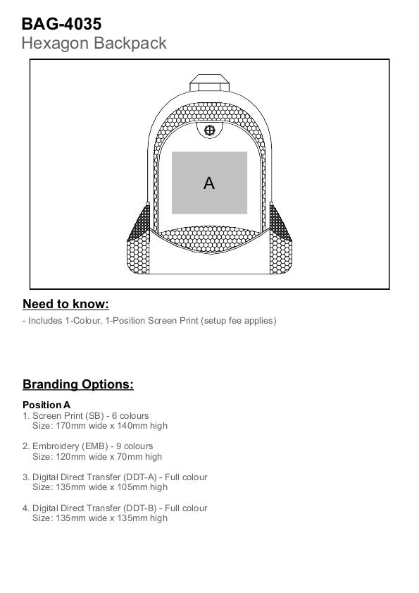 Extra wide and spacious laptop backpack with honeycomb surface interest front panels, adds a unique feature to the bag. The wide front panel allows your branding to be prominently displayed.