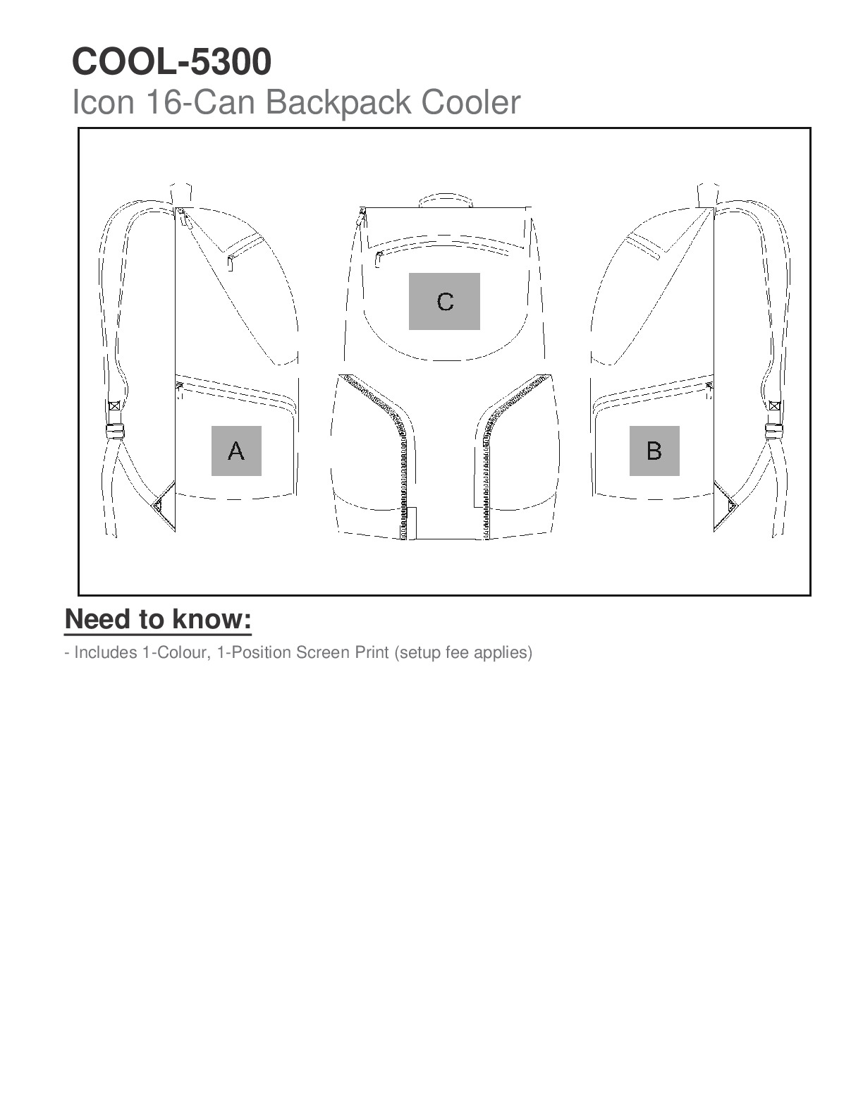 16 can backpack cooler with PEVA lining, two large zip pockets, zip pocket on the lid for branding, padded adjustable shoulder straps for a comfortable fit.