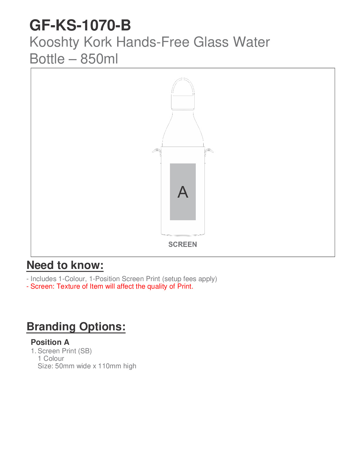Kooshty Kork Hands-Free Glass Water Bottle – 850ml