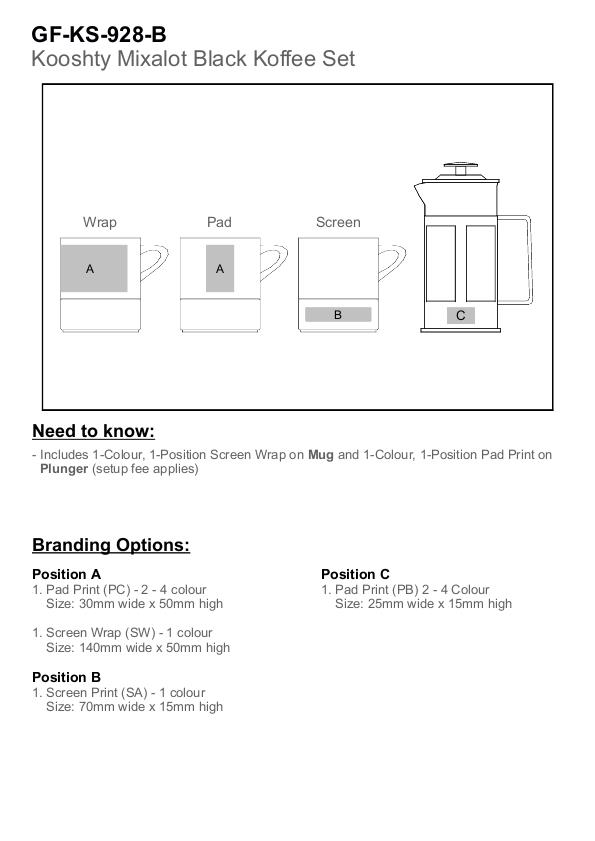 Made from high-quality A-Grade ceramic, the black mug in this set has a silicone band, which accentuates branding that matches the band colour. It’s combined with a black coffee plunger, ideal for making a single cup of coffee.