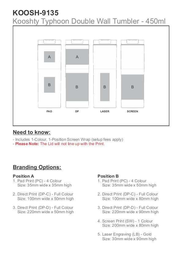 Whilst this product is dishwasher safe, branding methods, other than laser engraving and sublimation, will not withstand dishwasher cleaning.