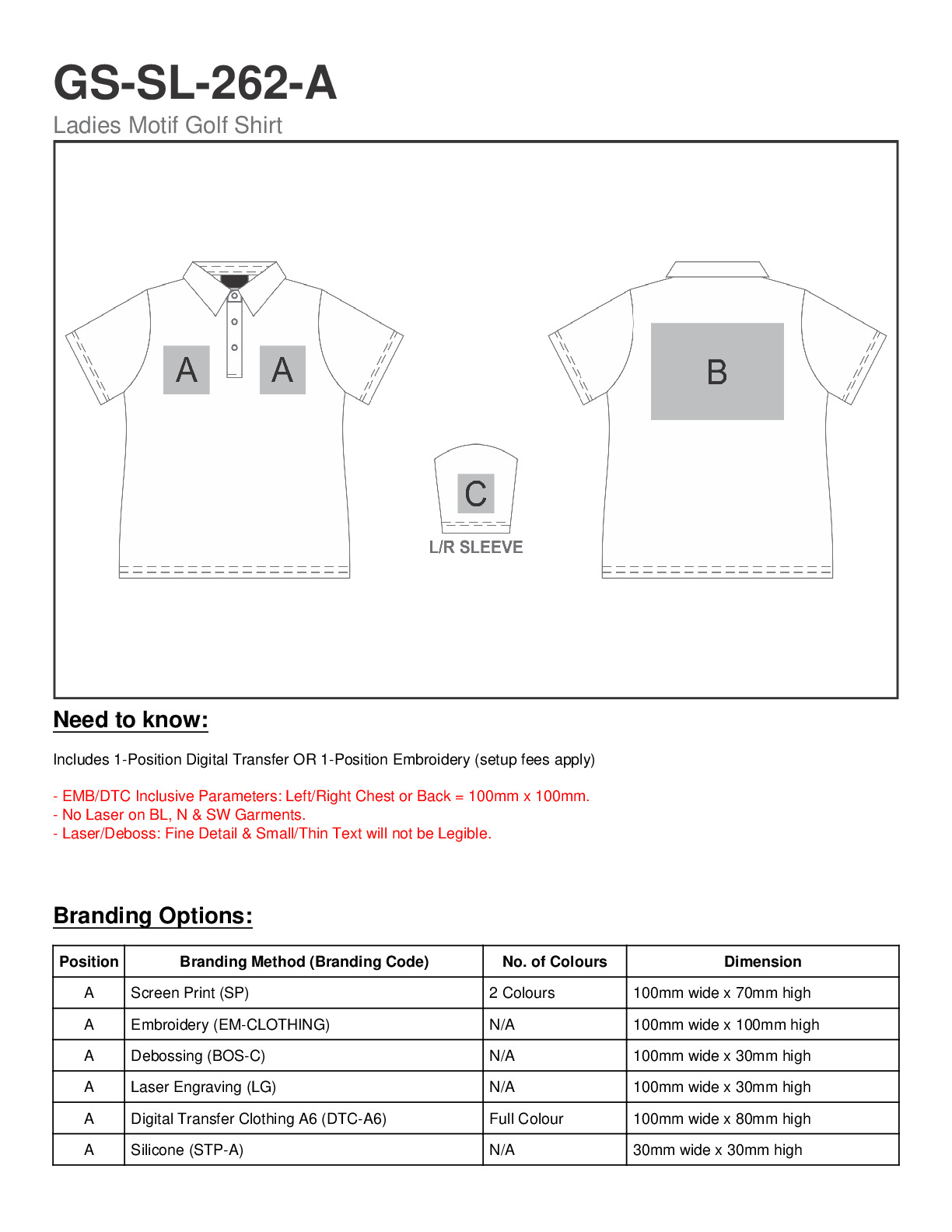 - Product Code: GS-SL-262-A