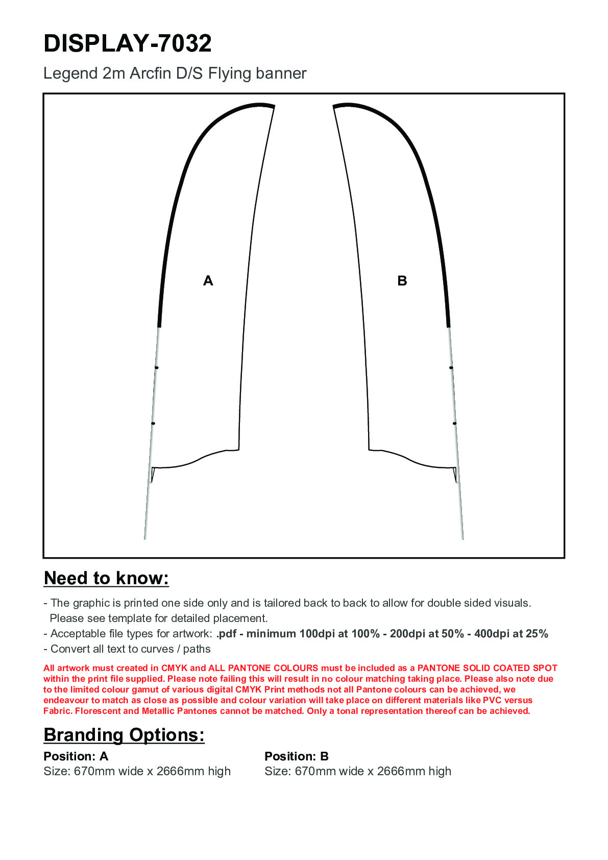 Legend 2M Sublimated Arcfin Double-Sided Flying Banner - 1 complete unit