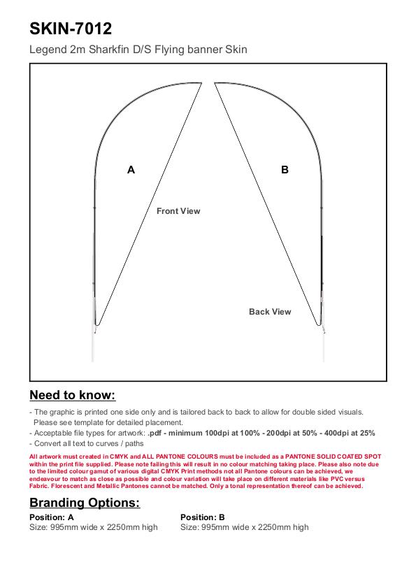 Legend 2m Sublimated Sharkfin Double-Sided Flying Banner Skin (Excludes Hardware)