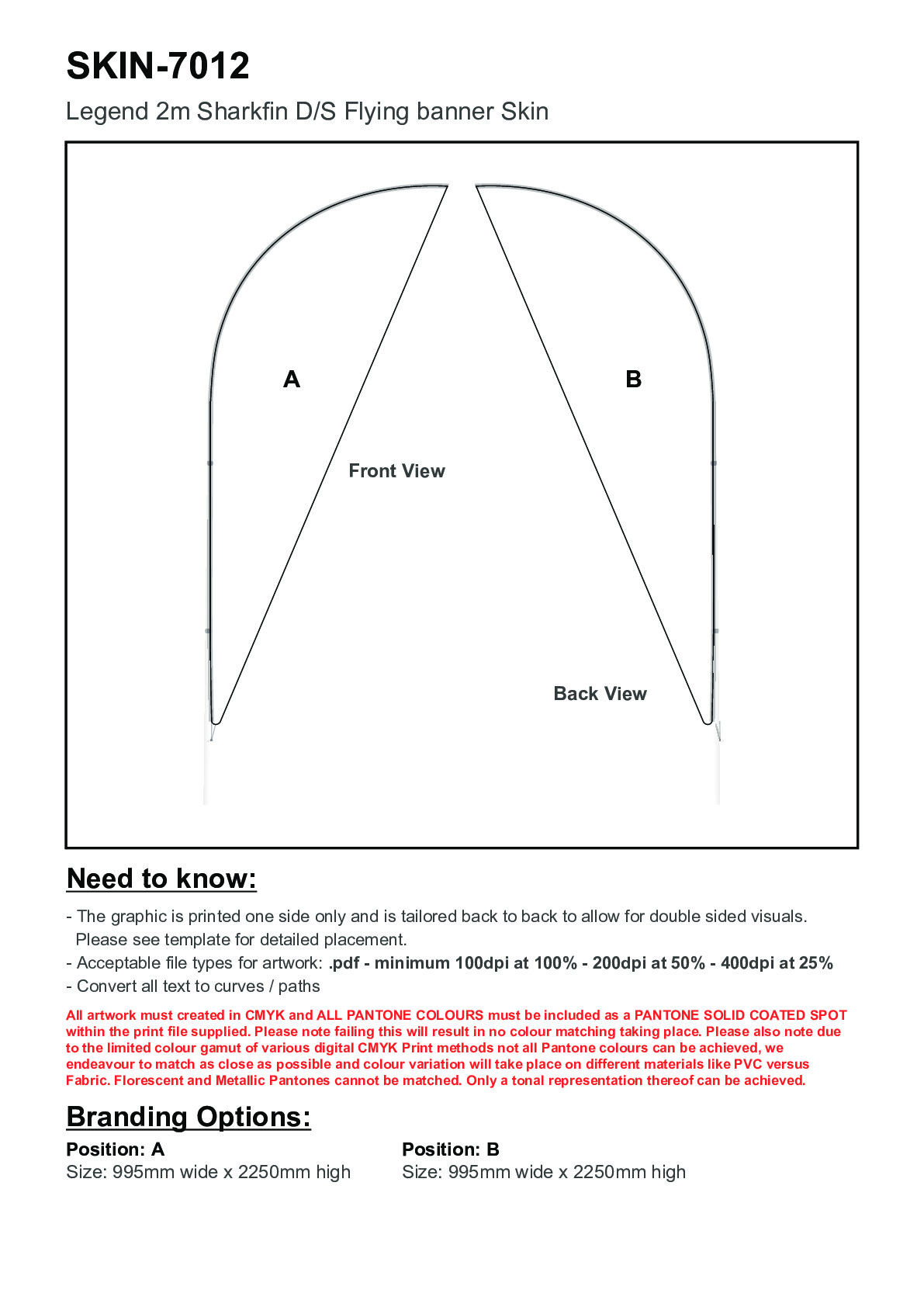 Legend 2m Sublimated Sharkfin Double-Sided Flying Banner Skin (Excludes Hardware)