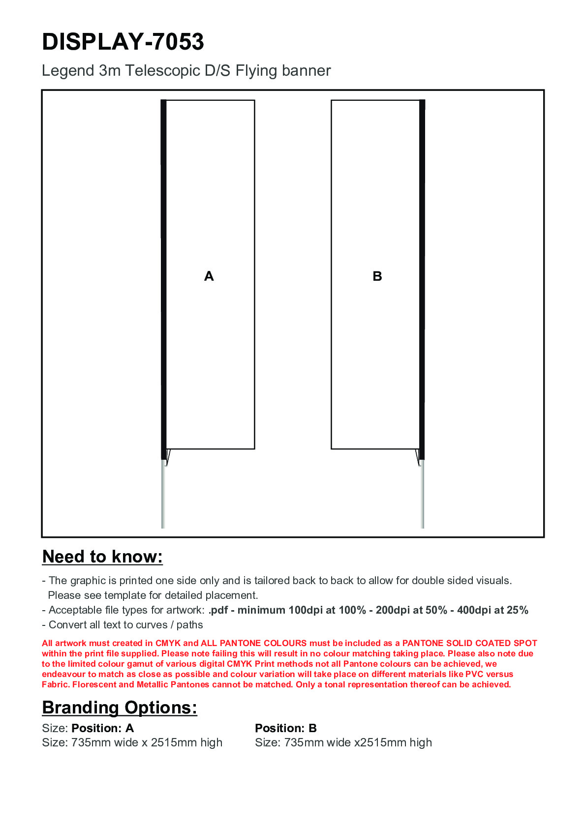 Legend 3M Sublimated Telescopic Double-Sided Flying Banner - 1 complete unit