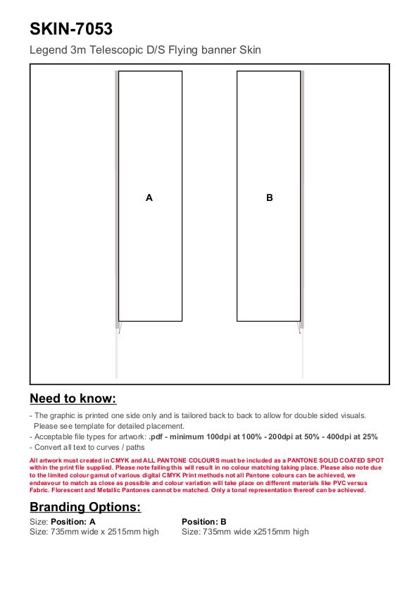 Legend 3m Sublimated Telescopic Double-Sided Flying Banner Skin (Excludes Hardware)