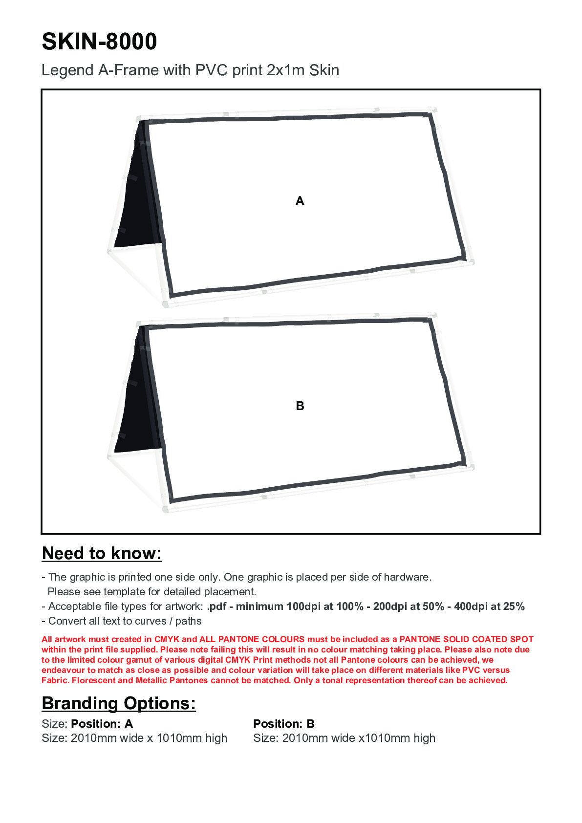 Legend A-Frame PVC Skin 2m x 1m (Excludes Hardware)