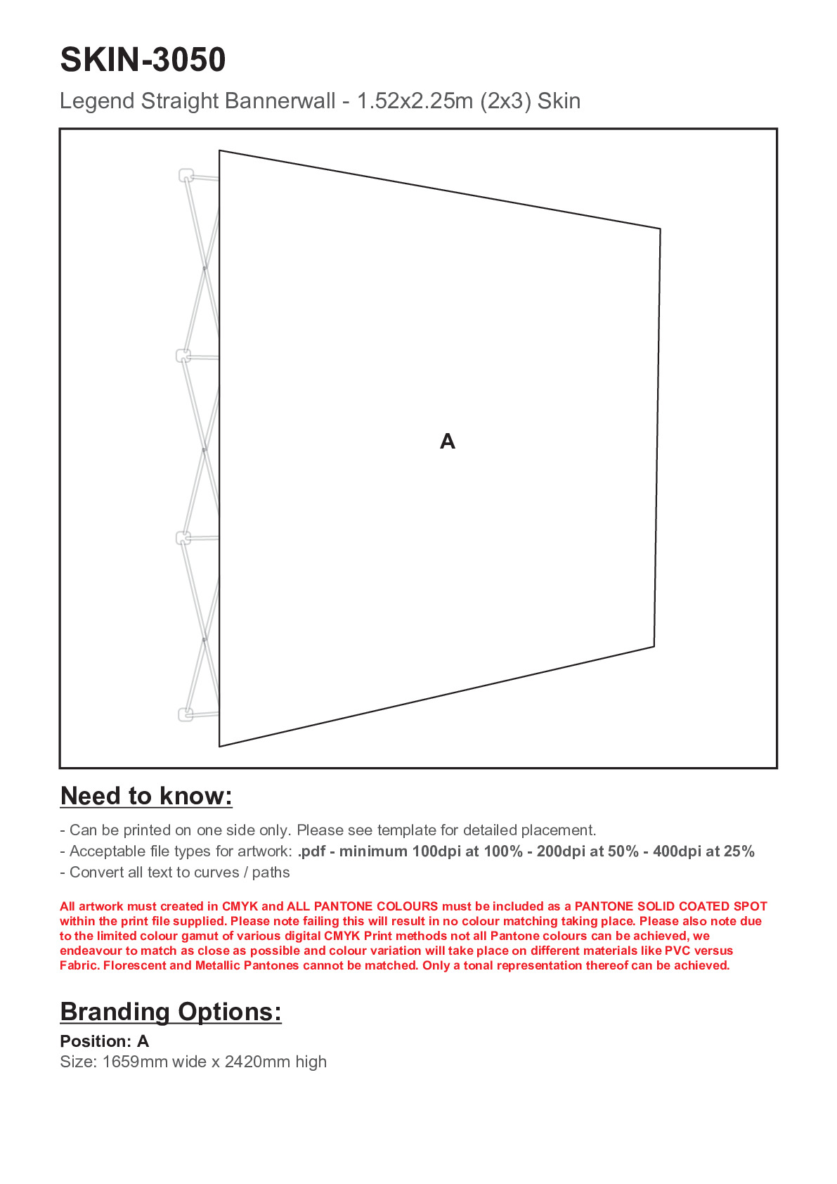 Refresh your banner for multiple campaigns by buying a new skin. This skin fits both sides of our 1.52 x 2.25m straight banner wall. If you would like to replace the front and back skins of your banner wall please purchase 2 units.