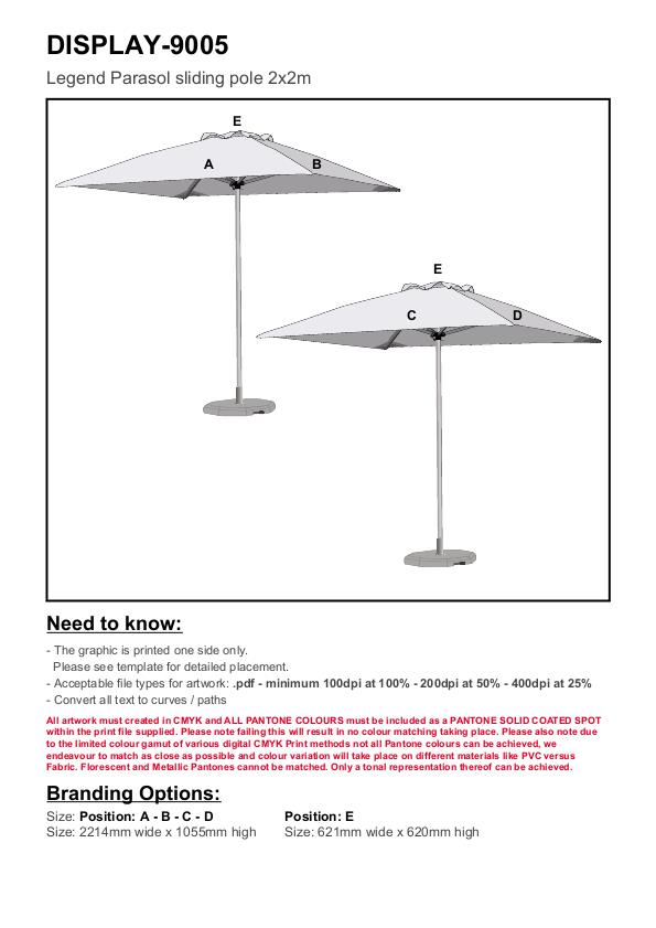 Legend Sublimated Parasol Sliding Pole 2m x 2m