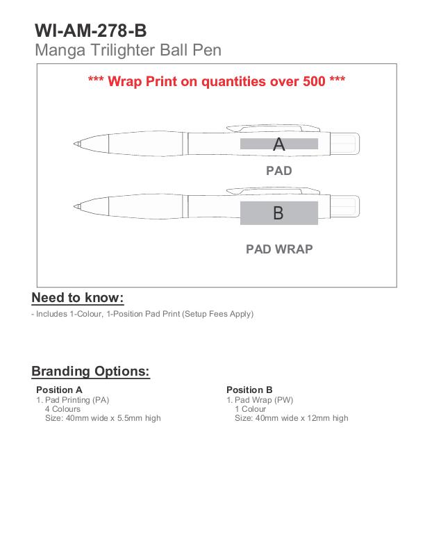 - 3-in-1 highlighter nib: yellow, orange and pink