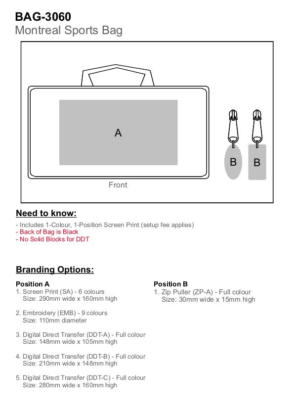 A cost effective sports bag options with a large and spacious main compartment. The front panel has a large branding area to showcase customer branding.