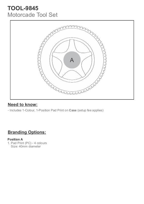 Get your next promotional event rolling with this DIY tyre-shaped tool-set. Includes assorted bits , assorted sockets , bit extension , long-nosed pliers ,6 x precision screwdrivers , side cutters, socket • tools: stainless steel • ABS case: 5.9 ( l ) x 16.5 ( dia )