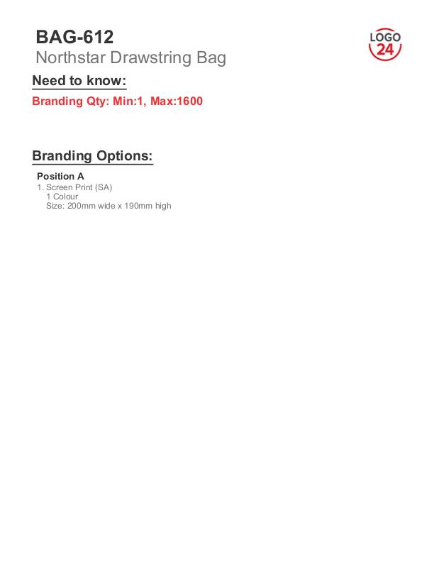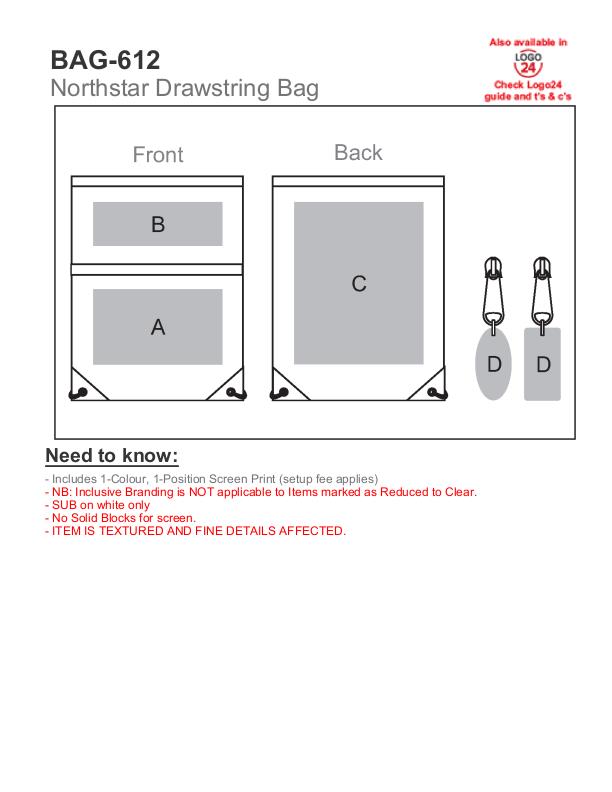- Can carry as a backpack or on one shoulder Spacious branding area