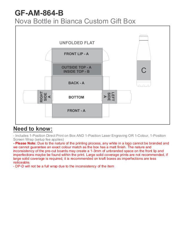 Due to the matte finish of the boxes and the nature of this printing process, the ink bonds by absorbing into the box material, thus resulting in the print possibly appearing less vibrant than it would with traditional Litho printing processes. Any white in a logo cannot be branded and we cannot guarantee an exact colour match as the box has a matt finish.