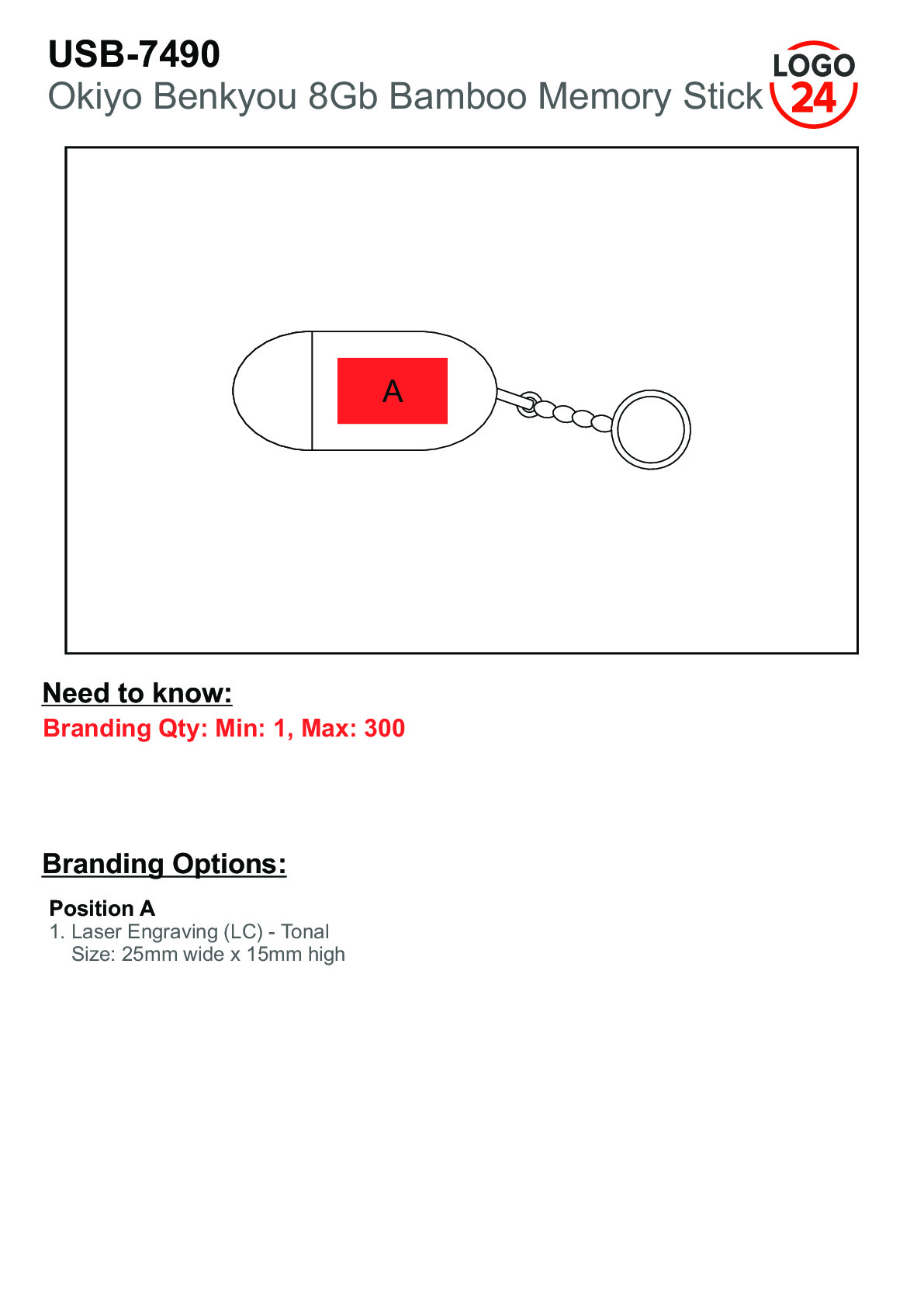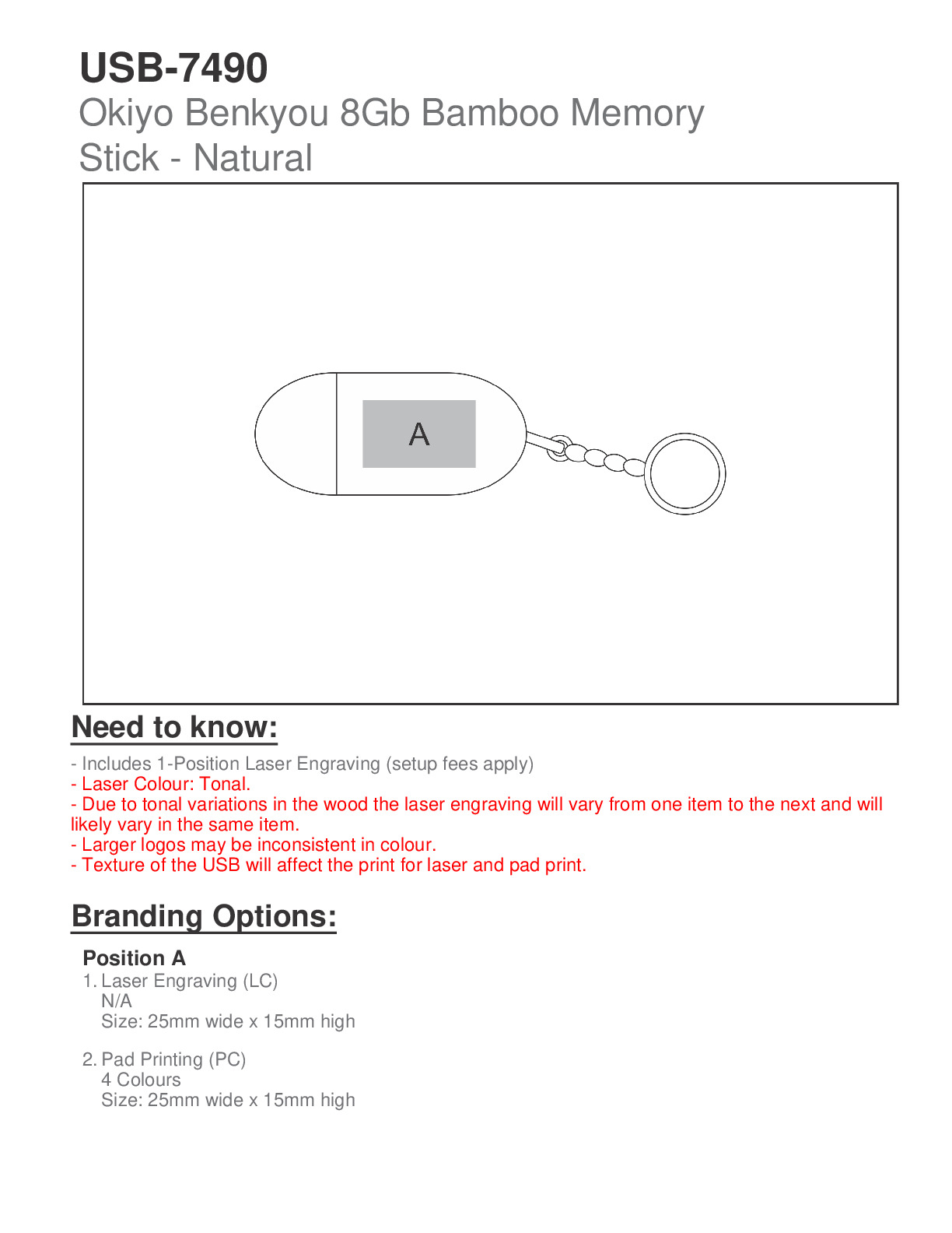 Sustainable bamboo has been used in place of artificial materials that may otherwise have been used to make this USB flash drive.