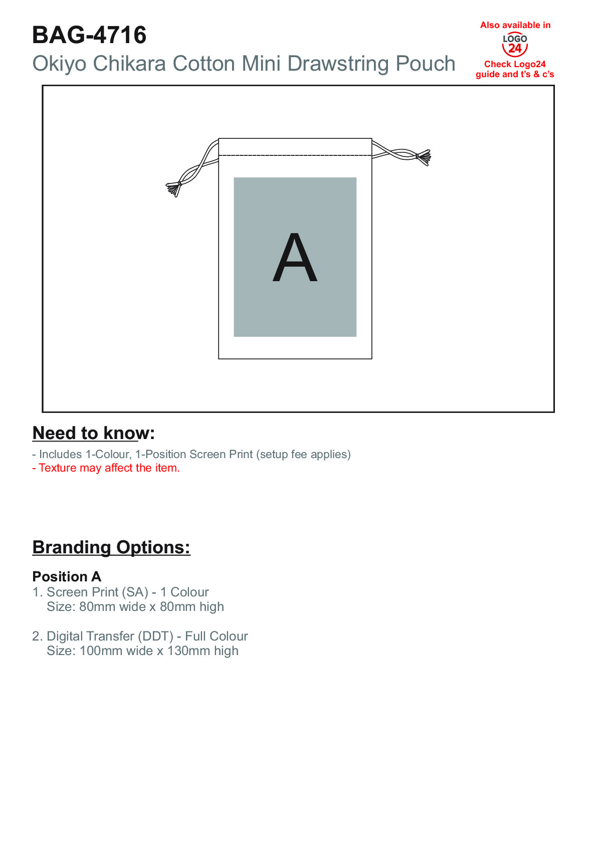 Made from natural cotton, this drawstring pouch can be used as a gift or goodie bag when combining products or even simply to improve the presentation of a single gift or giveaway. Thereafter it can be used by the recipient as a storage or travel accessory bag, especially handy for keeping gadgets and cables together.
