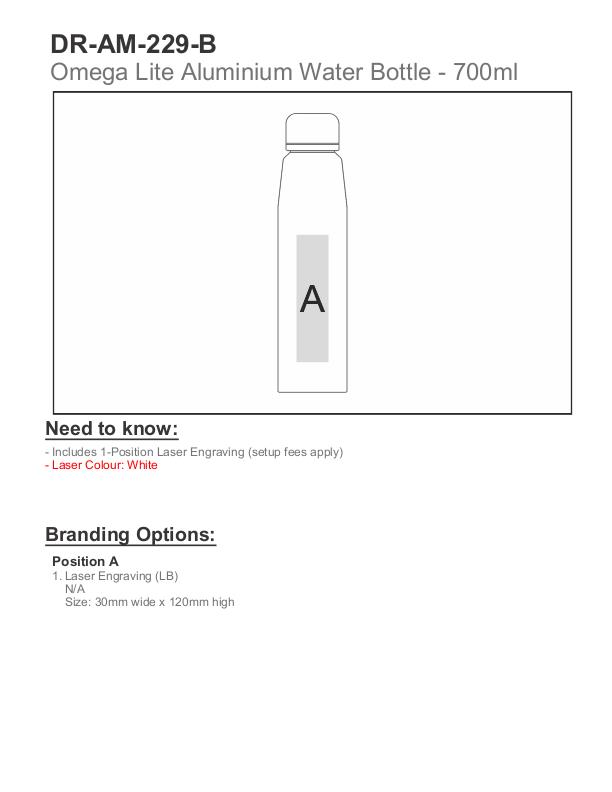 The lightweight, food grade aluminium makes this bottle easy to carry for sports and day-to-day activities. It features a rubberised coating on the outside which provides an attractive finish and looks great with laser branding.