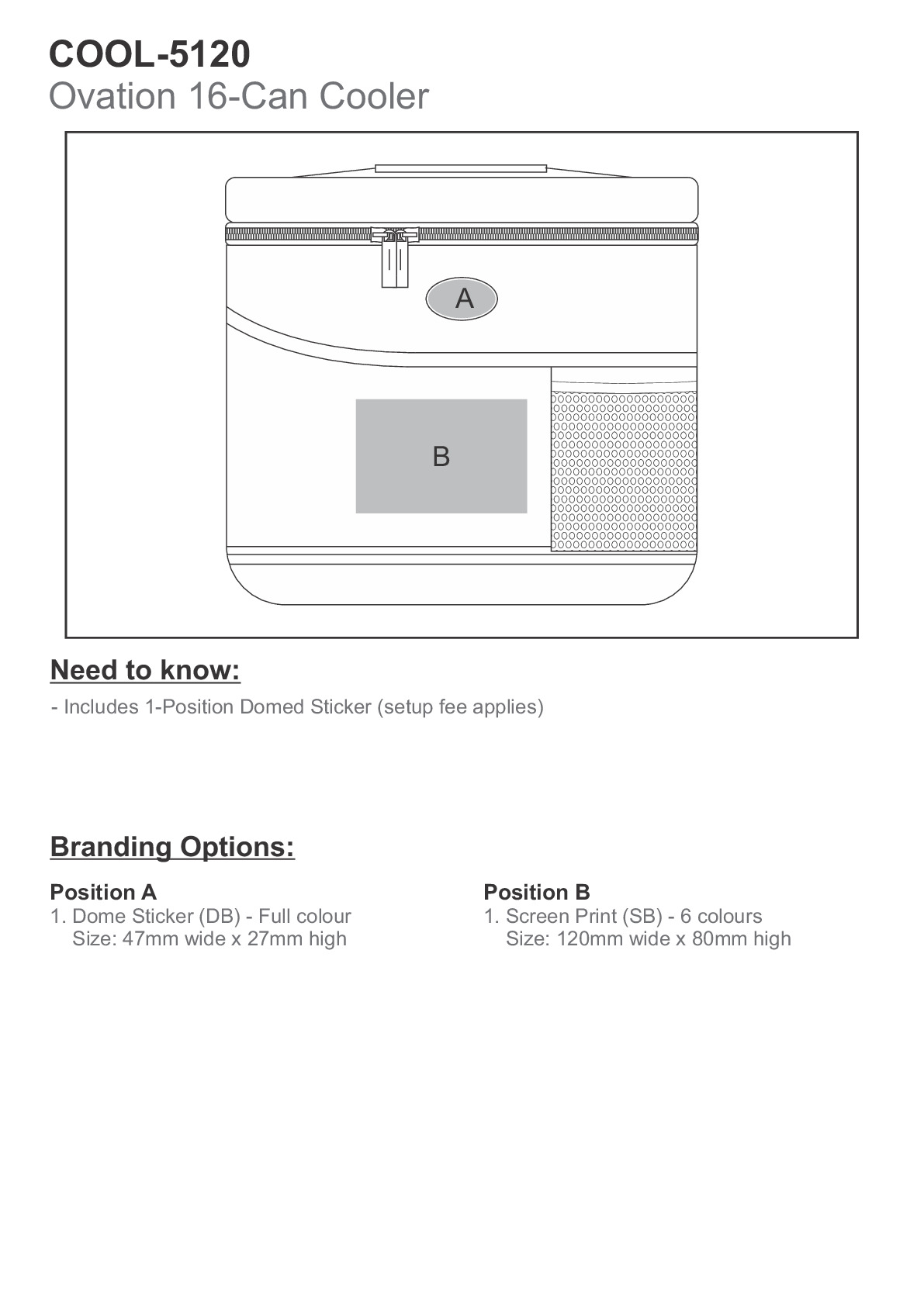 Unique oval shaped cooler. Zippered lid for main compartment with PEVA lining. Holds up to 16 cans. Side mesh pocket. Top carry handle. Recessed plaque for domed sticker application attached to cooler. Adjustable shoulder strap.