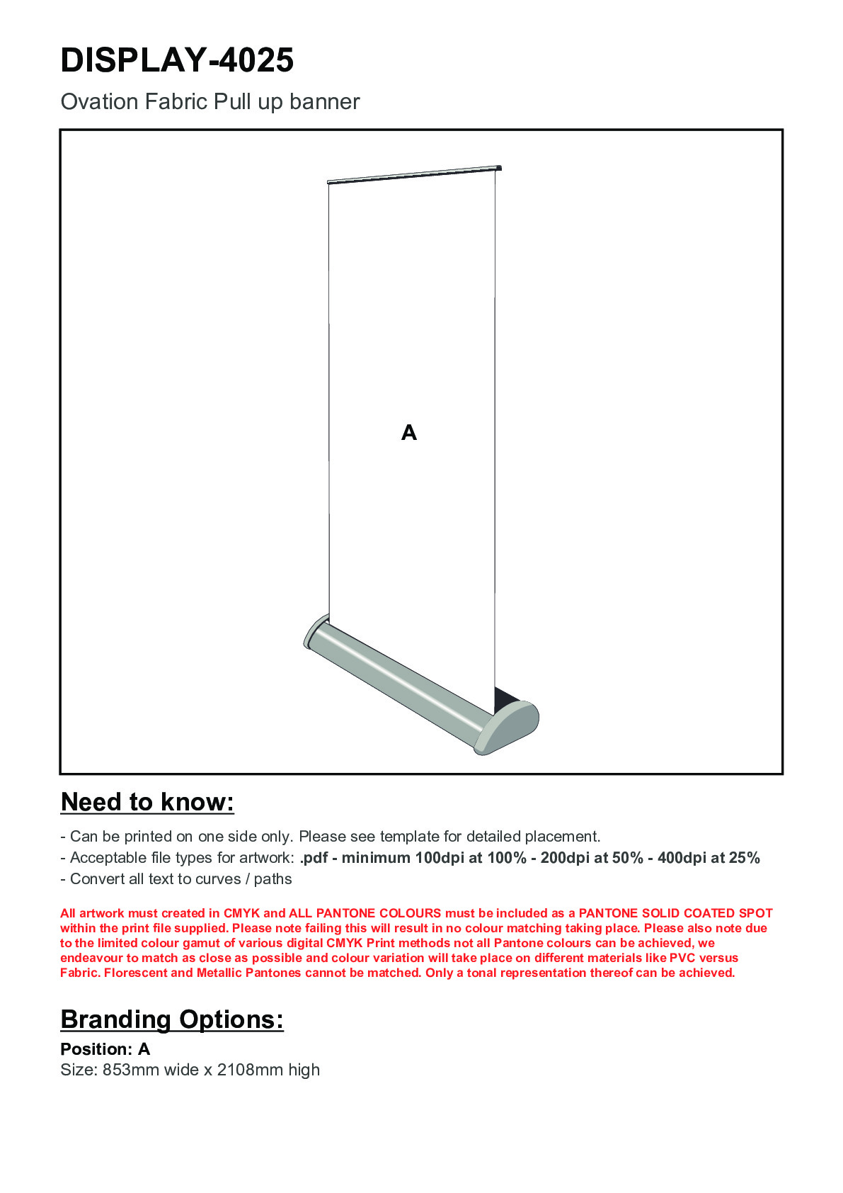 - 1 x banner skin included • polyester display fabric • visual size: 0.85 x 2m