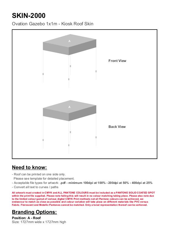 Ovation Gazebo 1m x 1m Kiosk Roof (Excludes Hardware)