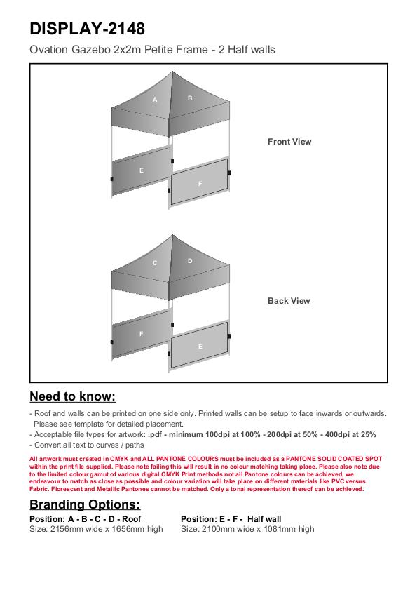 - slip over bag included: polyester oxford, size: 122 x 28 x 28cm, webbing handles (also sold individually as disbag-2140) • collapsible gazebo fits easily into carry bag