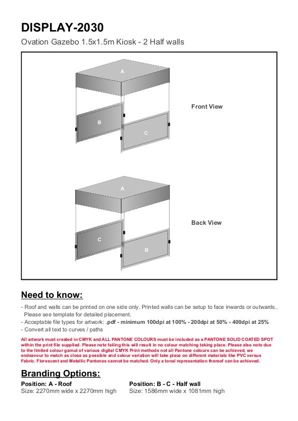 Ovation Sublimated Gazebo 1.5m X 1.5m - 2 Half-Wall Skins