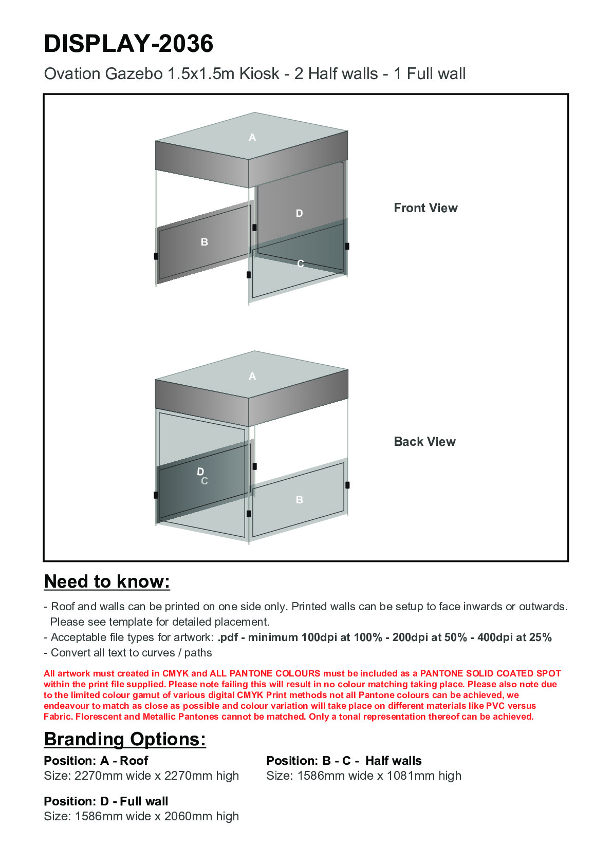 Ovation Sublimated Gazebo 1.5m X 1.5m - 2 Half-Wall Skins - 1 Full-Wall Skin
