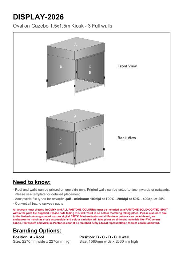 Ovation Sublimated Gazebo 1.5m X 1.5m - 3 Full-Wall Skins