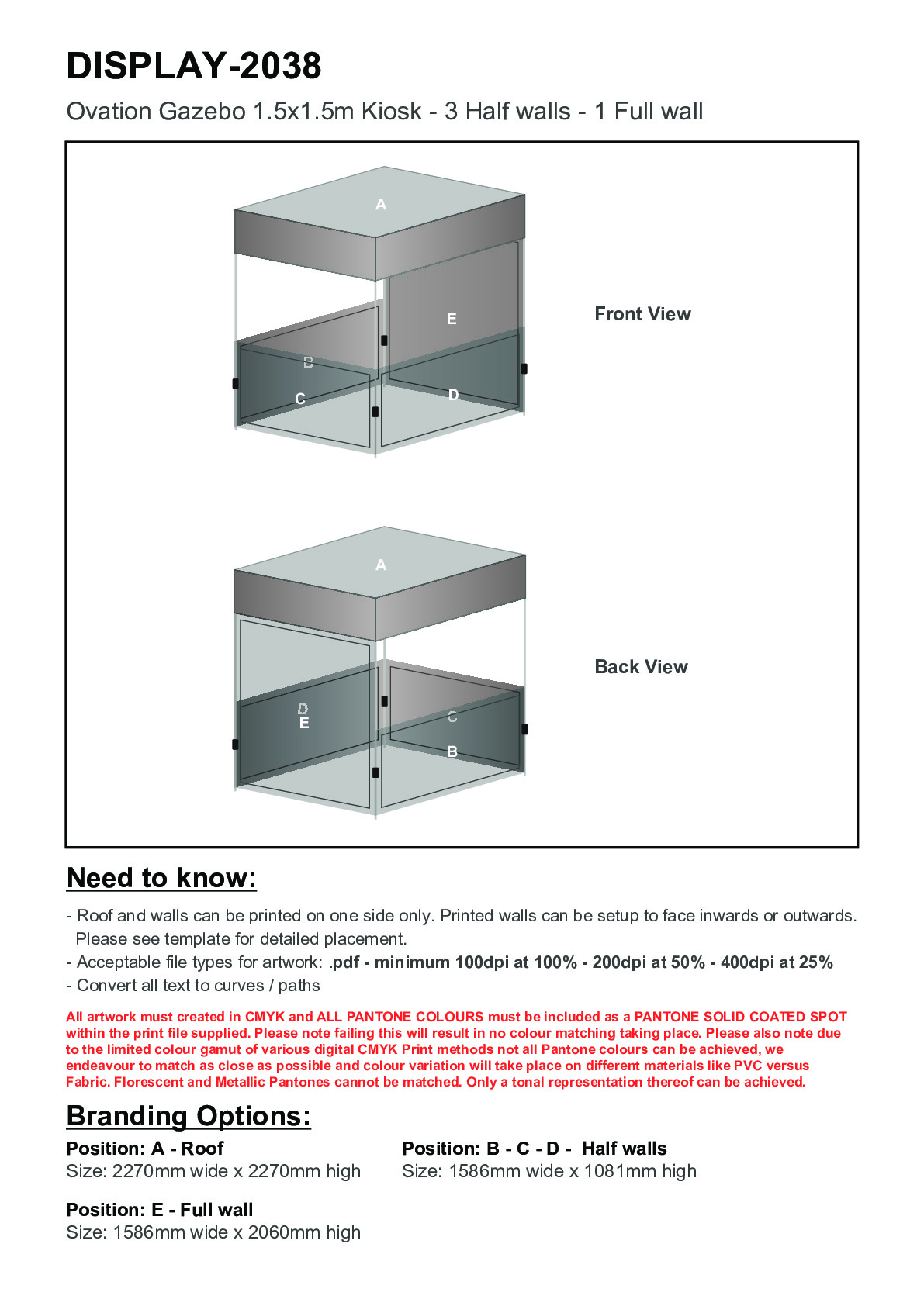 Ovation Sublimated Gazebo 1.5m X 1.5m - 3 Half-Wall Skins - 1 Full-Wall Skin