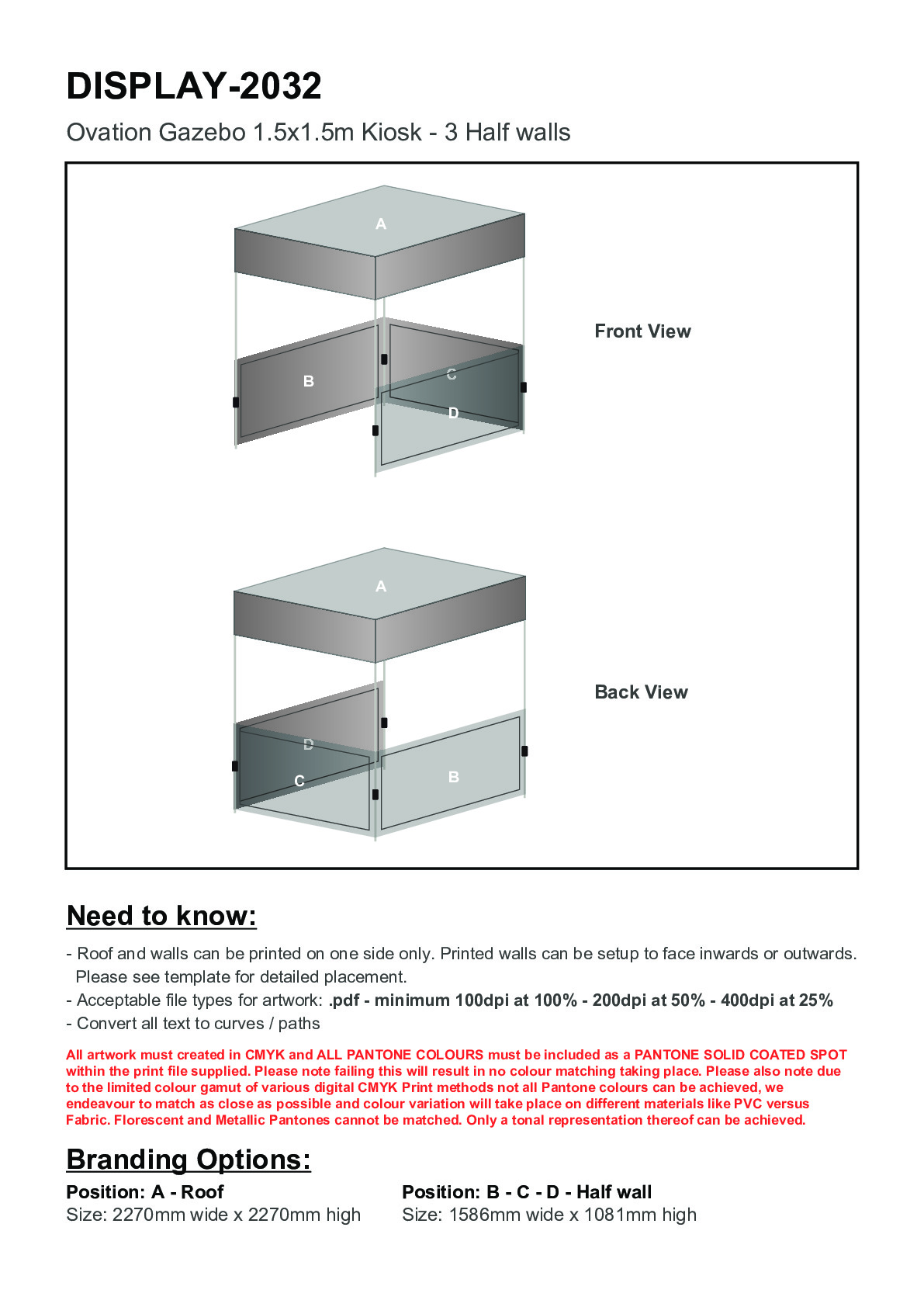 Ovation Sublimated Gazebo 1.5m X 1.5m - 3 Half-Wall Skins