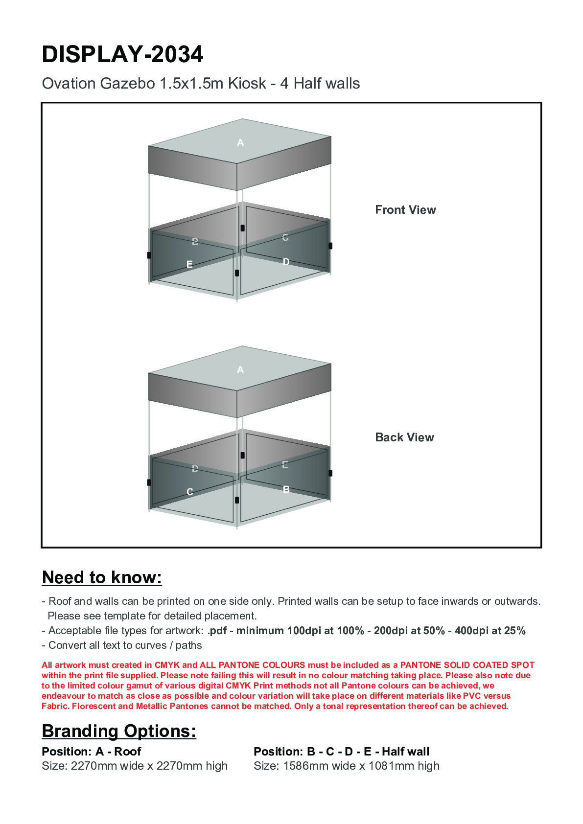 Ovation Sublimated Gazebo 1.5m X 1.5m - 4 Half-Wall Skins