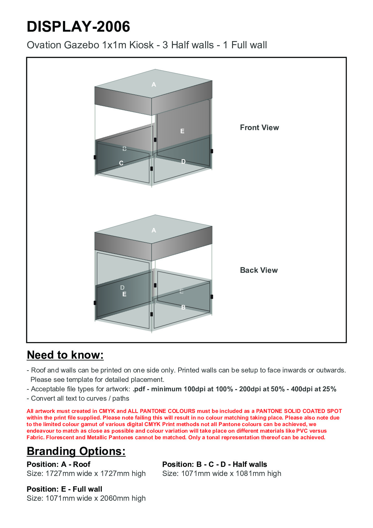 Ovation Sublimated Gazebo 1m X 1m Kiosk - 3 Half-Wall Skins - 1 Full-Wall Skin
