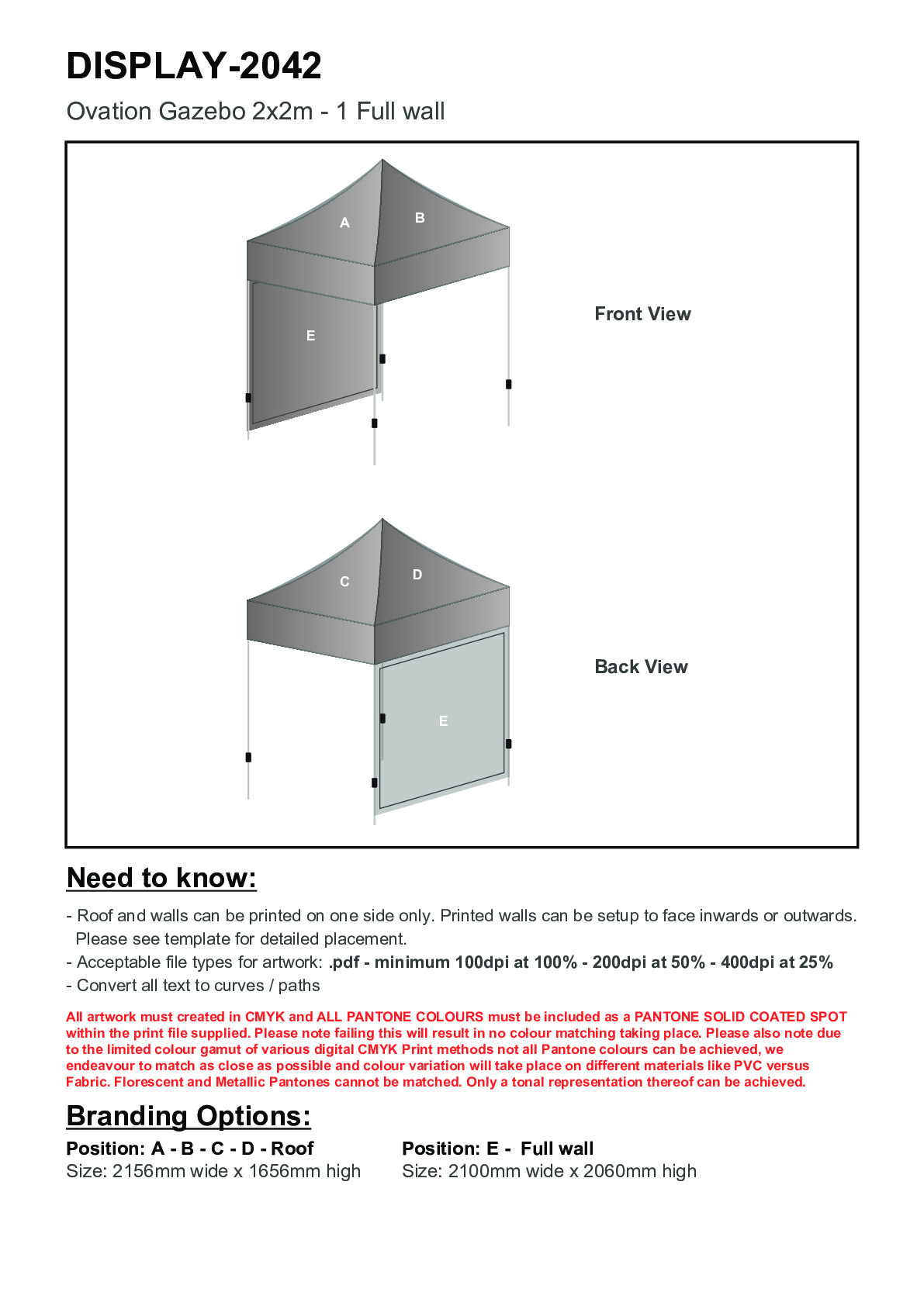 Ovation Sublimated Gazebo 2m X 2m - 1 Full-Wall Skin