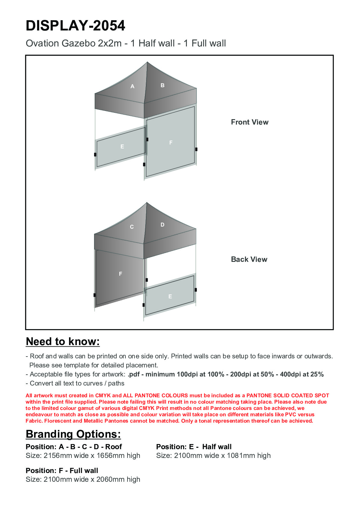 Ovation Sublimated Gazebo 2m X 2m - 1 Half-Wall Skin - 1 Full-Wall Skin