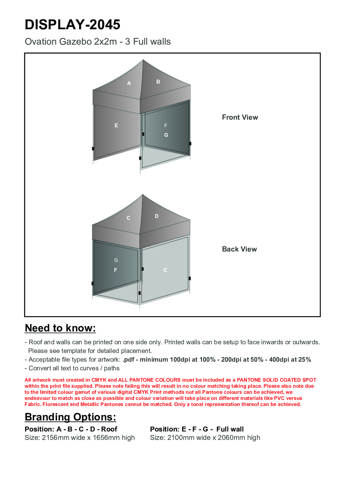 Ovation Sublimated Gazebo 2m X 2m - 3 Full-Wall Skins