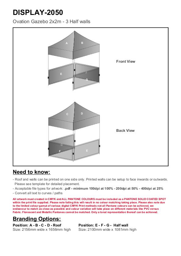 Ovation Sublimated Gazebo 2m X 2m - 3 Half-Wall Skins