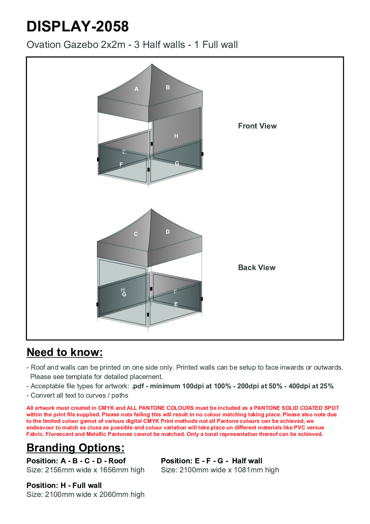 Ovation Sublimated Gazebo 2m X 2m - 3 Half-Wall Skins - 1 Full-Wall Skin