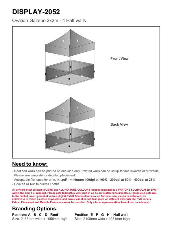 Ovation Sublimated Gazebo 2m X 2m - 4 Half-Wall Skins